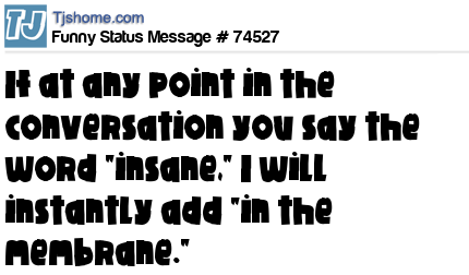 X  If at any point in the conversation you say the word "insane," I will instantly add "in the membrane."