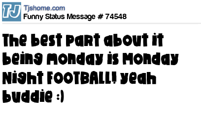 X The best part about it being monday is Monday Night FOOTBALL! yeah buddie :)