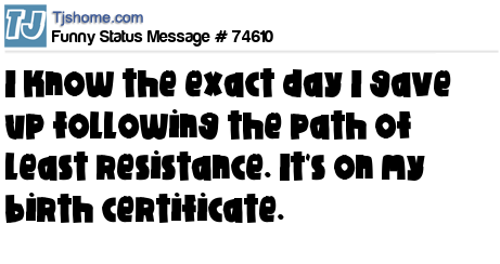 X I know the exact day I gave up following the path of least resistance. It's on my birth certificate.