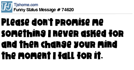 X says Please don't promise me something I never asked for and then change your mind the moment I fall for it.