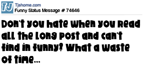 - # 83073 Don't you hate when you read someone's post that you usually find at least a little chuckle of humor in and not only is there no chuckle, it's not even insightful or clever and it's just entirely too long and the sentence runs on and on yet for some reaso