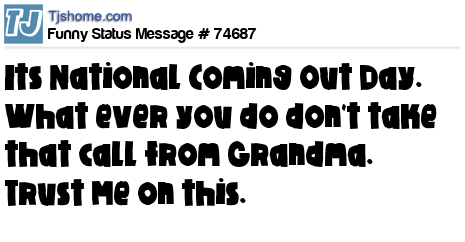 X its National Coming Out Day. What ever you do don't take that call from Grandma. Trust Me on this.