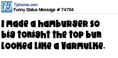 X is I made a hamburger so big tonight the top bun looked like a Yarmulke.