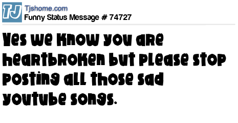 X yes we know you are heartbroken but please stop posting all those sad youtube songs.