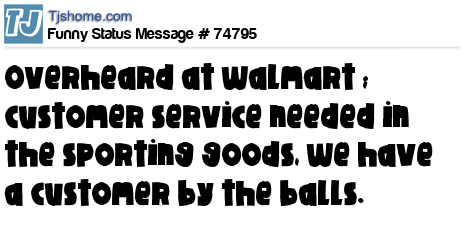 X overheard at walmart ; customer service needed in the sporting goods, we have a customer by the balls.