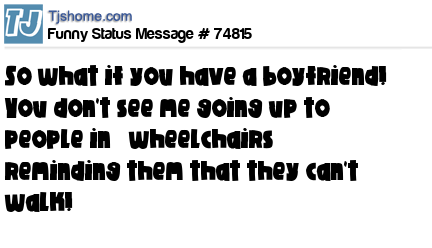 X is So what if you have a boyfriend! You don't see me going up to people in wheelchairs reminding them that they can't walk!