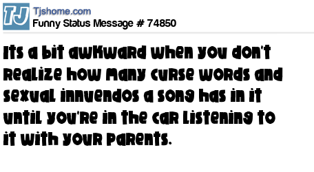 - # 75080 Its a bit awkward when you don't realize how many curse words and sexual innuendos a song has in it until you're in the car listening to it...with your grandma