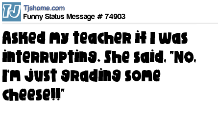 X  Asked my teacher if I was interrupting. She said, "No, I'm just grading some cheese!!"