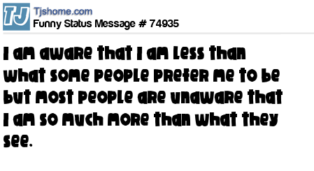- # 74539 I am aware that I am less than some people perfer me to be but most people are unaware that I am so much more than what they see.