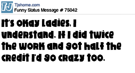 X It's okay ladies, I understand. If I did twice the work and got half the credit I'd go crazy too.