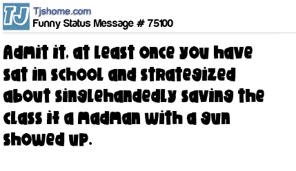 X Admit it, at least once you have sat in school and strategized about singlehandedly saving the class if a madman with a gun showed up.