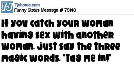X says if you catch your woman having sex with another woman, just say the three magic words, "Tag me in!"