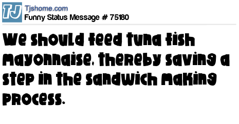 - # 81177 We should feed tuna fish mayonnaise... saving a step in the sandwich making process.