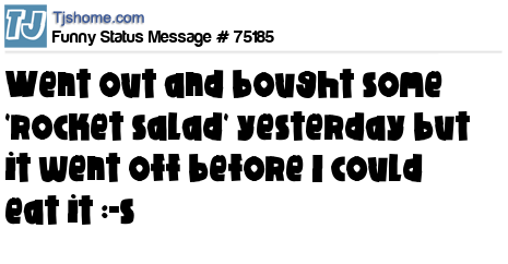 X Went out and bought some 'rocket salad' yesterday but it went off before I could eat it :-s
