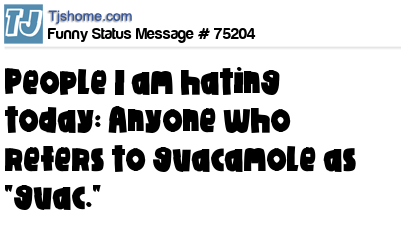 X People I am hating today: Anyone who refers to guacamole as "guac."