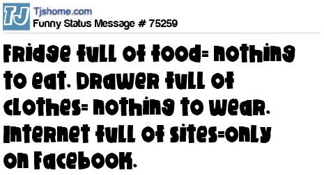 X Fridge full of food= nothing to eat. Drawer full of clothes= nothing to wear. Internet full of sites=only on Facebook.