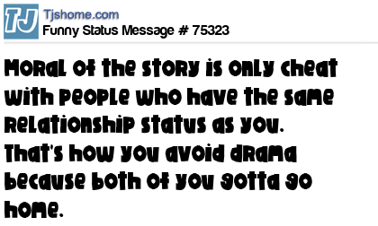 X Moral of the story is only cheat with people who have the same relationship status as you. That's how you avoid drama because both of you gotta go home.