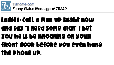 X Ladies: Call a man up right now and say "I need some d!ck" I bet you he'll be knocking on your front door before you even hang the phone up.