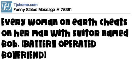 X  Every woman on earth cheats on her man with suitor named Bob. (BATTERY OPERATED BOYFRIEND)