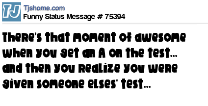 X There's that moment of awesome when you get an A on the test... and then you realize you were given someone elses' test...