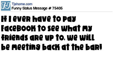 X is If I ever have to pay FaceBook to see what my friends are up to, we will be meeting back at the bar!