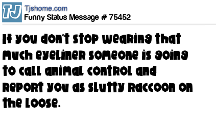 X says If you don't stop wearing that much eyeliner someone is going to call animal control and report you as slutty raccoon on the loose.