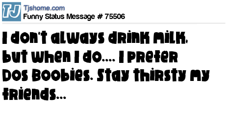 - # 75562 "I don't always drink milk, but when I do, I prefer Dos Chi Chis." hahaha Stay Thirsty my friends.