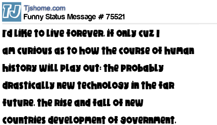 X I'd like to live forever, if only cuz I am curious as to how the course of human history will play out: the probably drastically new technology in the far future, the rise and fall of new countries development of government, humans rights, literature, etc