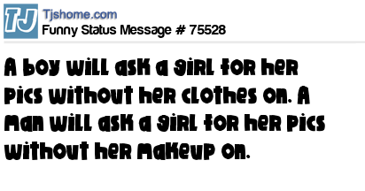 X says A boy will ask a girl for her pics without her clothes on. A man will ask a girl for her pics without her makeup on.