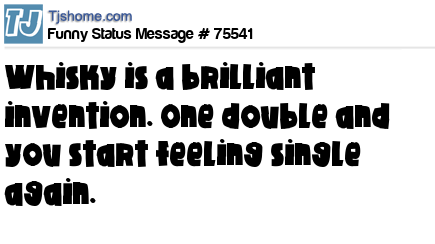 X says Whisky is a brilliant invention. One double and you start feeling single again.