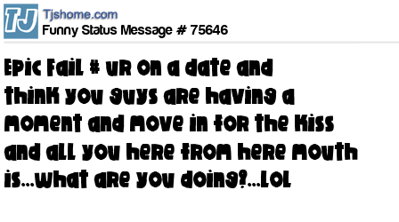 X is Epic Fail # ur on a date and think you guys are having a moment and move in for the kiss and all you here from here mouth is...what are you doing?...lol