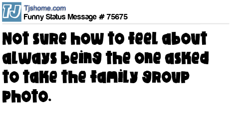 X says Not sure how to feel about always being the one asked to take the family group photo.