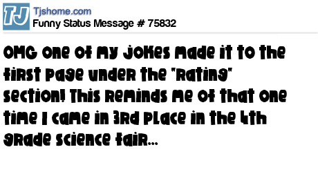 X is OMG one of my jokes made it to the first page under the "rating" section! This reminds me of that one time I came in 3rd place in the 4th grade science fair...