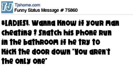 X is #LADIES!, Wanna know if your man cheating ? Snatch his phone run in the bathroom if he try to kick the door down "You aren't the only one"