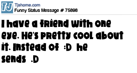X says I have a friend with one eye. He's pretty cool about it. Instead of “:D” he sends “.D”