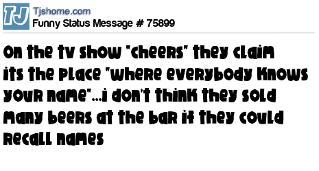 X says on the tv show "cheers" they claim its the place "where everybody knows your name"...i don't think they sold many beers at the bar if they could recall names