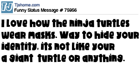 - # 126850 I like how ninja turtles wear masks. Good way to hide your identity. It's not like you're a giant turtle or anything.