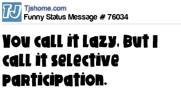 - # 129387 I don't call it "laziness." I call it "selective participation."