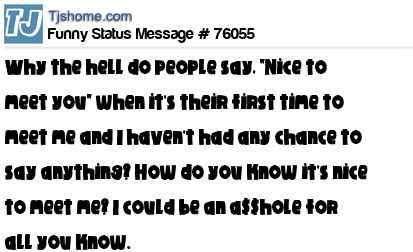 - # 37975 Why do people say "nice to meet you" before I've even said anything? How do you know it's nice to meet me? I'm an a$$hole. It probably isn't.