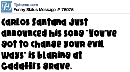 X Carlos Santana just announced his song "You've got to change your evil ways" is blaring at Gadaffi's grave.