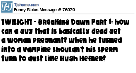 X TWILIGHT - Breaking Dawn Part 1: how can a guy that is basically dead get a woman pregnant? when he turned into a vampire shouldn't his sperm turn to dust like Hugh Hefner?