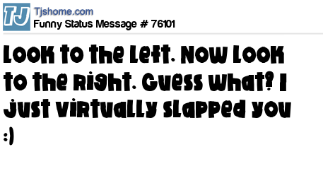 - # 77735 Look to the left. Now look to the right. I just virtually b!tch-slapped you.