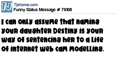 X is I can only assume that naming your daughter Destiny is your way of sentencing her to a life of internet web cam modelling.