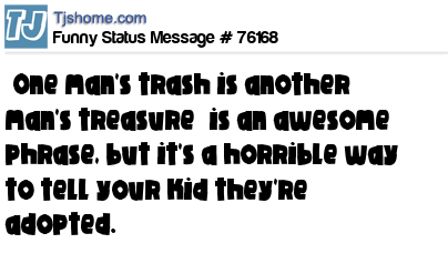 - # 135582 “One man’s trash is another man’s treasure” is an awesome phrase. But it’s a horrible way to tell your kid they’re adopted.