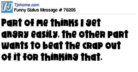 X Part of me thinks I get angry easily, the other part wants to beat the crap out of it for thinking that.