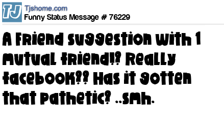 X is A Friend suggestion with 1 mutual friend!? Really facebook?? Has it gotten that pathetic? ..smh.