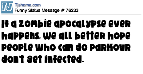 - # 117126 Question: if you infected all the undead with tetanus, wouldn't lock jaw solve the pesky zombie apocalypse problem?