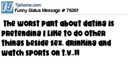 - # 76243 The worst part about dating is pretending I like to do other things beside sex, drinking and video games.