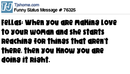 - # 67154 Fellas: If your woman starts updating her Facebook status right in the middle of having sex with you, it might be a clue that you are not doing her right.