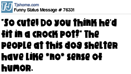X "So cute! Do you think he'd fit in a crock pot?" The people at this dog shelter have like *no* sense of humor.